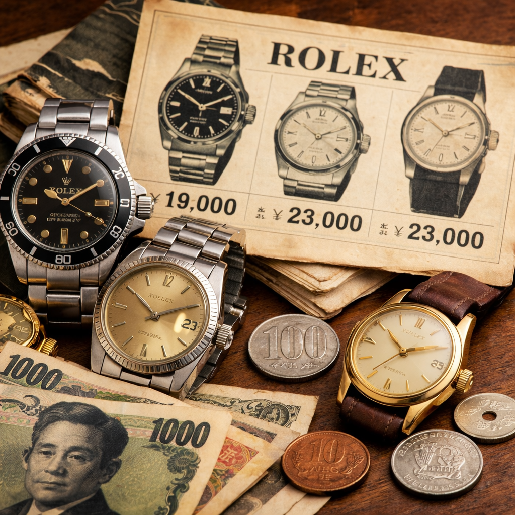 1960〜70年代の平均月収と照らし合わせてみると、ロレックスは決して日常的に気軽に買えるものではなかったものの、「一生モノの贅沢品」として現実的に検討できる範囲に収まっていました。